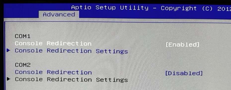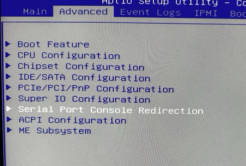 在許多 RS232 伺服器的應用場景中,管理者經常需要進行 BIOS 設定以及查看開機過程的各種狀態訊息。透過 BIOS 內的 Console Redirection 功能,您可以使用 RS232 伺服器來遠程操控 BIOS 並查看系統啟動過程。